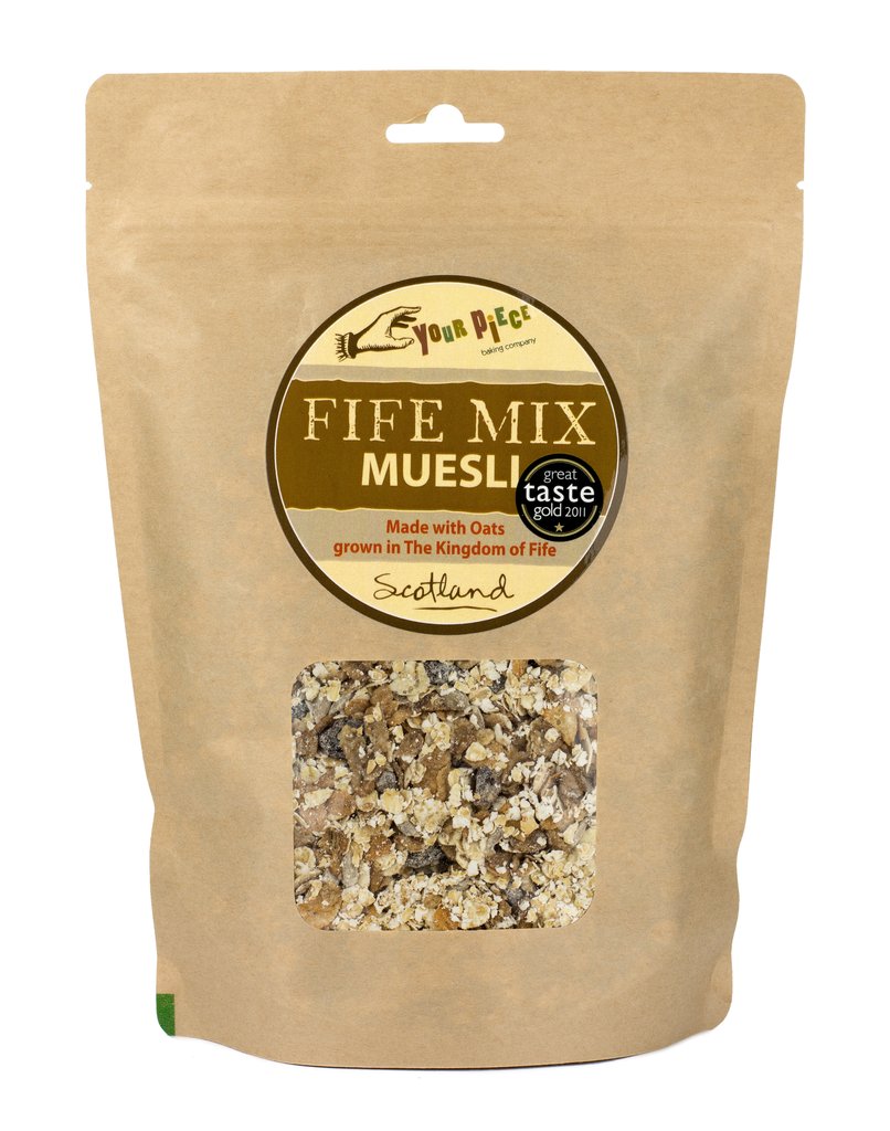 We have added 40% fruit, nuts and seeds to make our unique luxury “Beggars Mantle” mix. Why “Beggars Mantle”? Well, James VI of Scotland is said to have described Fife as a “Beggars Mantle fringed with gold…” The gold he referred to was the string of wealthy fishing villages on the coast, made rich through trade with the Low Countries and the “Beggars Mantle” referred to the impoverished interior. This is ironic given that today Fife is known for having some of Scotland’s richest and most productive agricultural land. This land yields excellent quality oats that help make up the heart of our luxury muesli.